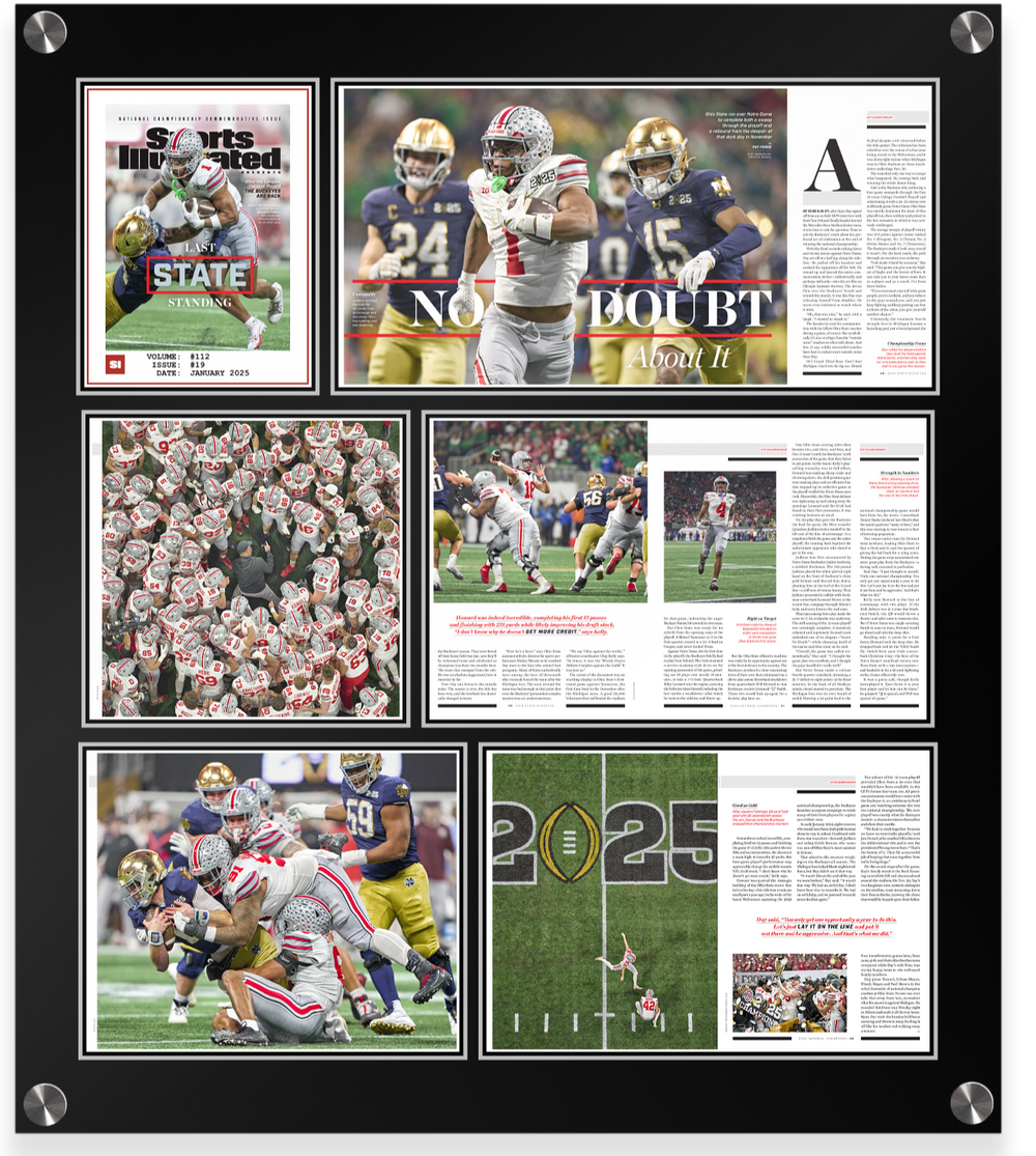 Celebrate the Ohio State's triumphant 2025 National Championship victory with this exclusive SI Features wall art. Measuring 34"x38", this piece honors the Buckeyes' remarkable season, culminating in their 34-23 win over the Notre Dame Fighting Irish on January 20, 2025, at Mercedes-Benz Stadium in Atlanta.